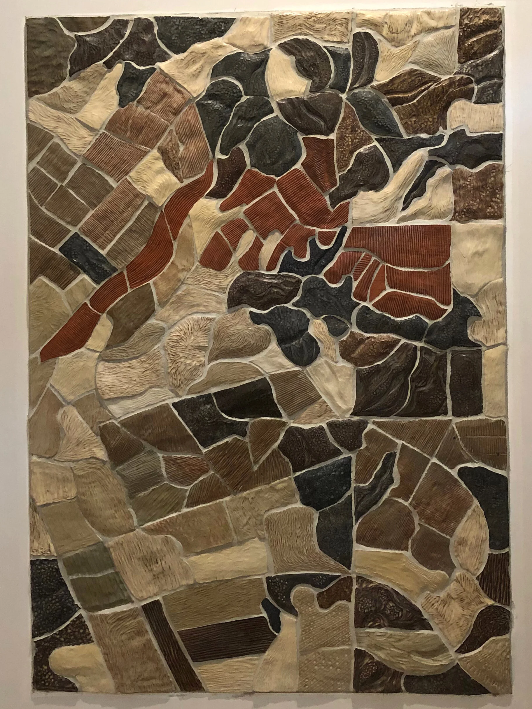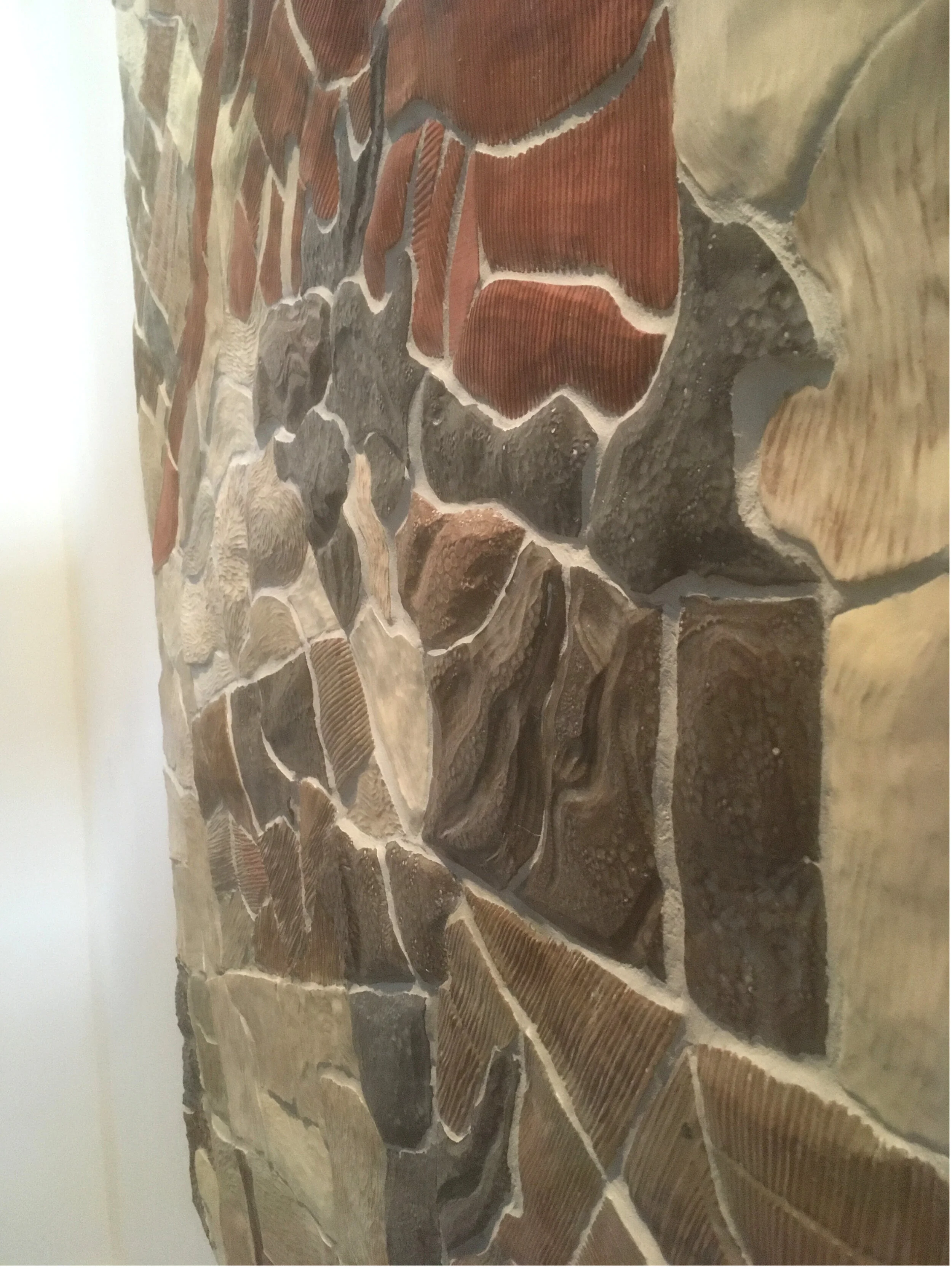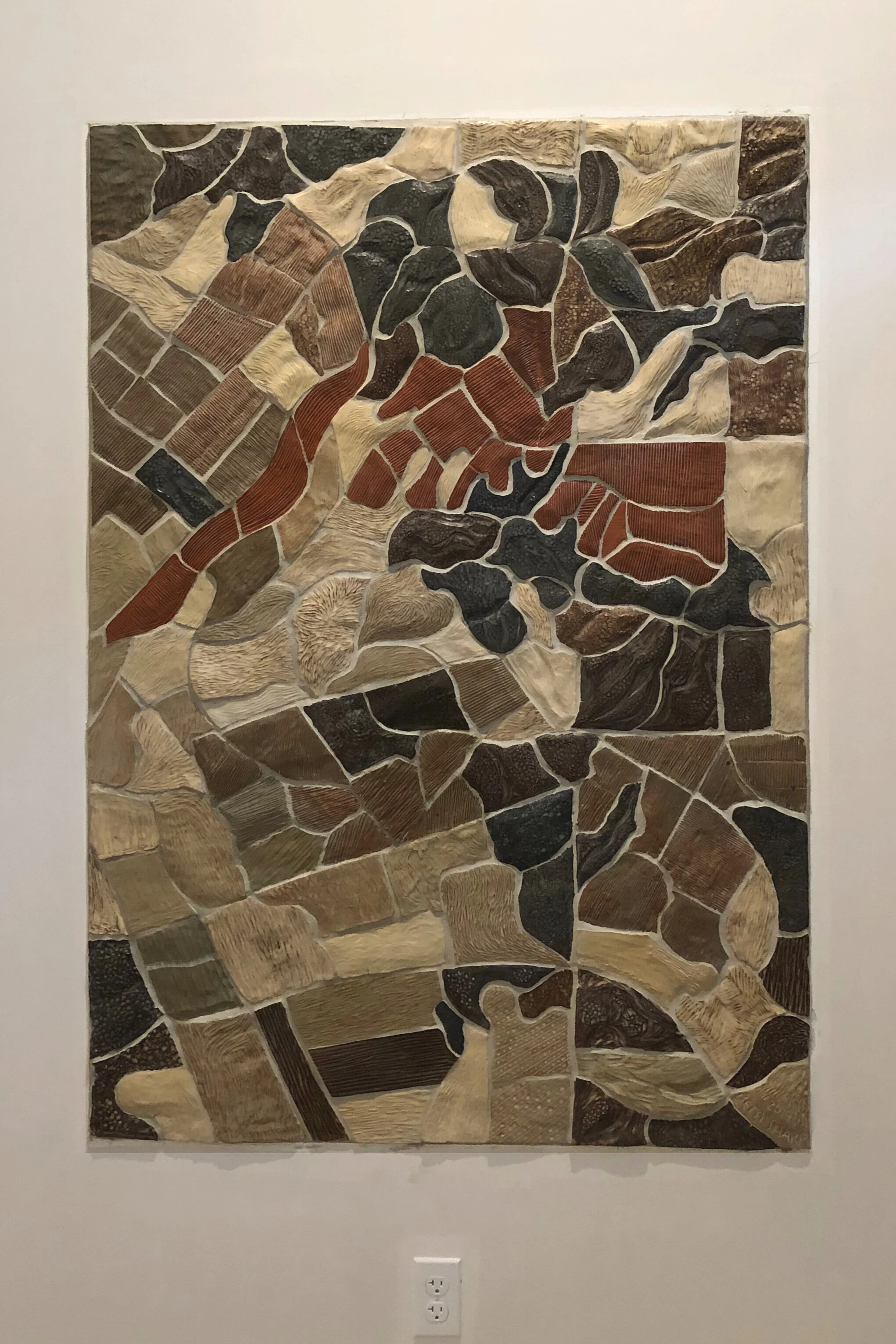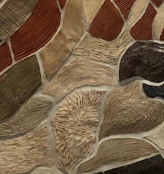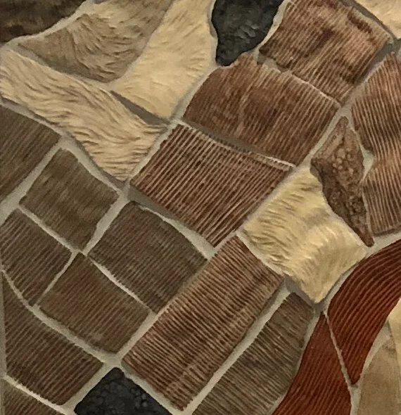 Battle Creek Cellars opened their tasting room in October 2019, in Portland’s Pearl District. For this brand new space, they were looking for a cartographic piece that would convey the vitality of the Willamette Valley in natural earth tones. On this map, the Battle Creek vineyard blocks are in glazed in a rich madrona red color, and scored to show the layout of the planted rows. Other glazes and sculpted textures tell which parcels are wooded, which are fields, and which are vineyards. Translating this intricately sectioned cartography into clay art was a long and fascinating process. The mural is 3.5 feet by 5 feet.